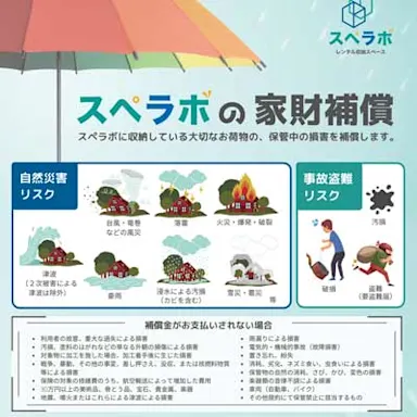 一般的なサイズの段ボールで、約72〜144個分の大きさとなり、かなり大きめの広さです。洗濯機や自転車などの大きめの家具・家電や、オフィス用品・商品在庫などの保管場所としてもご利用いただけます。
